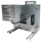 Direktgetriebener Radialventilator. Gehäuse in Stahlausführung. Laufrad mit Vorwärtsgekrümmten Schaufeln aus Stahl. Alle Oberflächen lackiert oder beschichtet in RAL 5010 / Korrosionsschutzklasse C3.